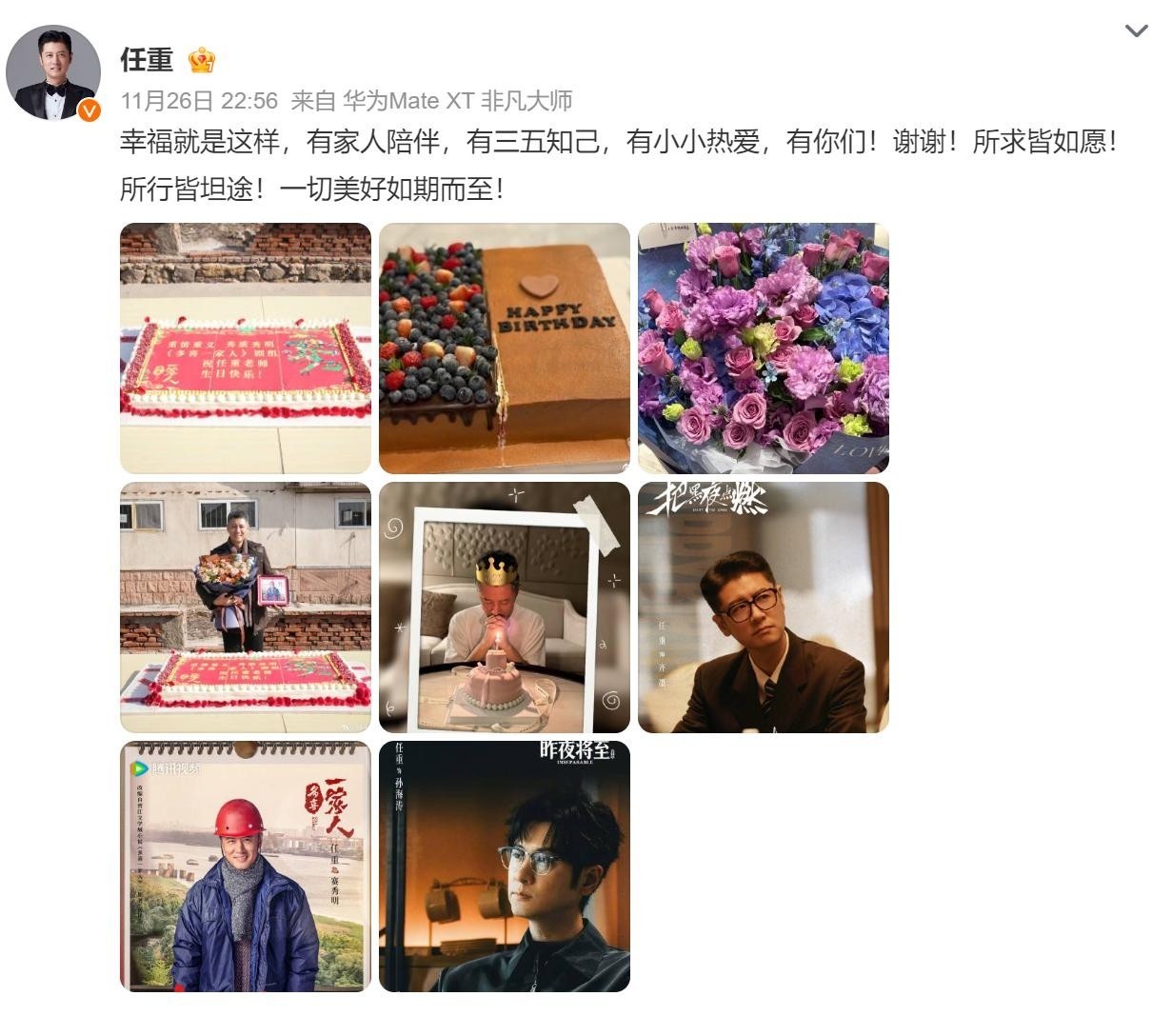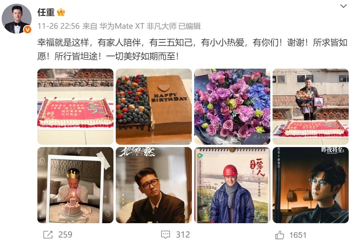几天前,46岁的演员任重在个人社交账号上传了一张朴素却洋溢温情的生日留影。