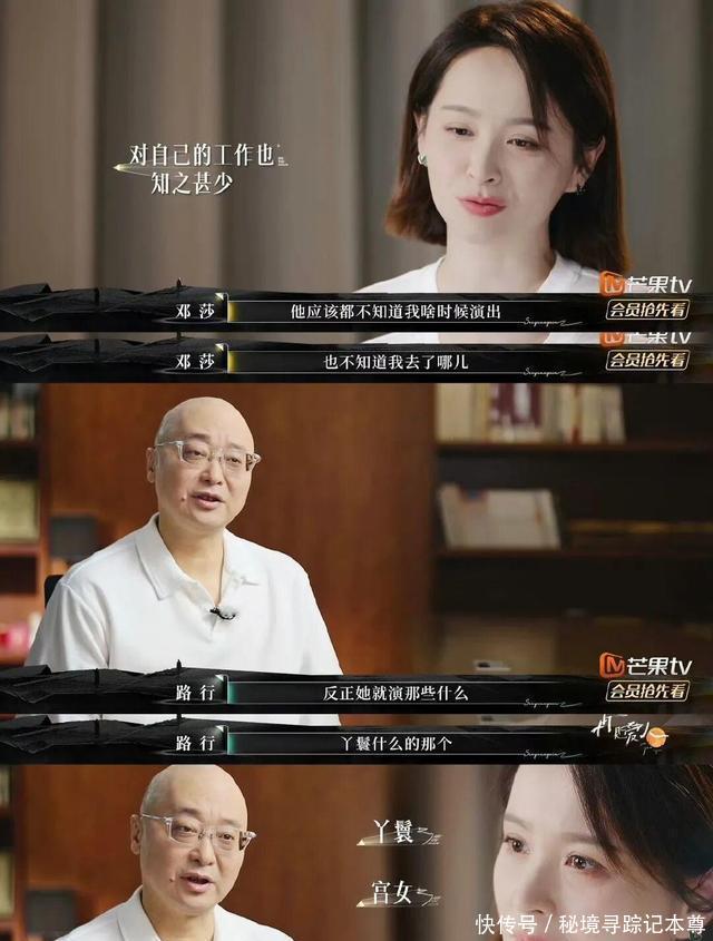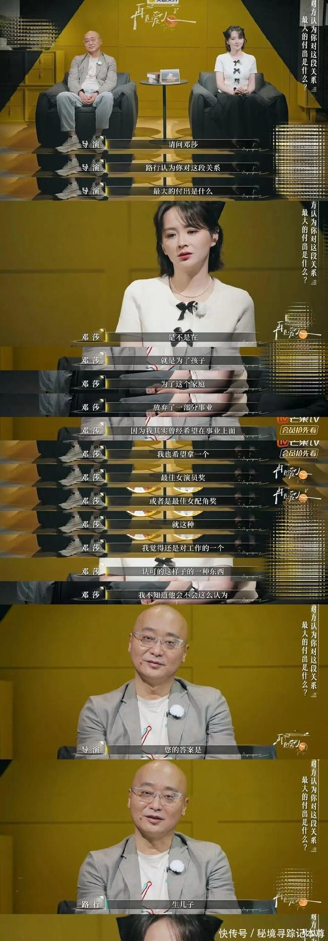 你说巧不巧?他前脚辞职,后脚上综艺,感情问题全摆在台面上。节目中夫妻问答那一段,很多人都看傻了。路行说邓莎对家最大的贡献是“生儿子”,对她拍戏的事压根不关心,随口一句“反正她就演那些宫女、丫鬟”,听着真让人来气。而邓莎呢,15号预告片里就说自己过的是“丧偶式婚姻”,两人因为怀孕才结婚,这几年几乎半分居,平时沟通基本靠有事说事,有时一周连条微信都没有。