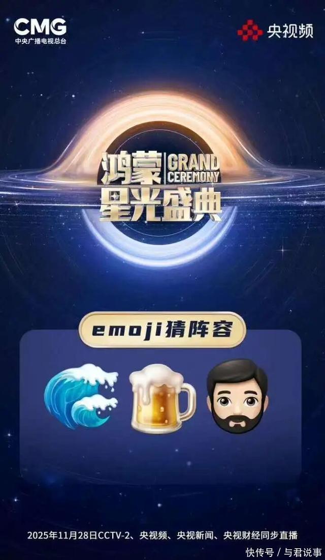 此外,现场还将有 科技专家、行业翘楚与文艺工作者齐聚 共赴这场科技之夜 诠释“在一起,就可以”的深刻内涵 央视频已公布新一波 鸿蒙星光盛典实力派嘉宾的Emoji线索 在评论区写下你猜测的TA吧
