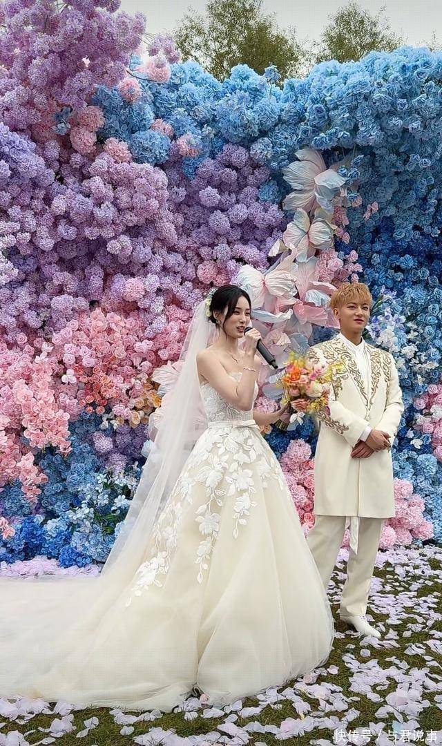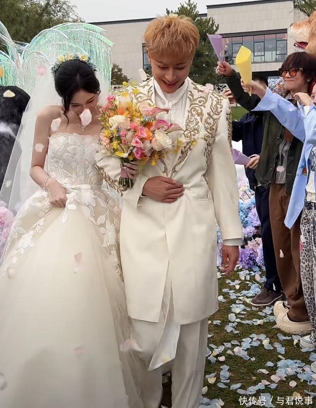 不得不说,这次徐艺洋选的婚纱还是很漂亮的,也很适合她,黄子韬穿的新郎服也非常帅气,黄子韬说网友们也就能在婚礼上看到这么帅气的他!网友满屏送祝福,大家都祝福黄子韬新婚快乐。黄子韬说,你们这样说话,我反而不适应了,也不怼我了!黄子韬虽然是今天的新郎官,但他还是那么幽默有趣!